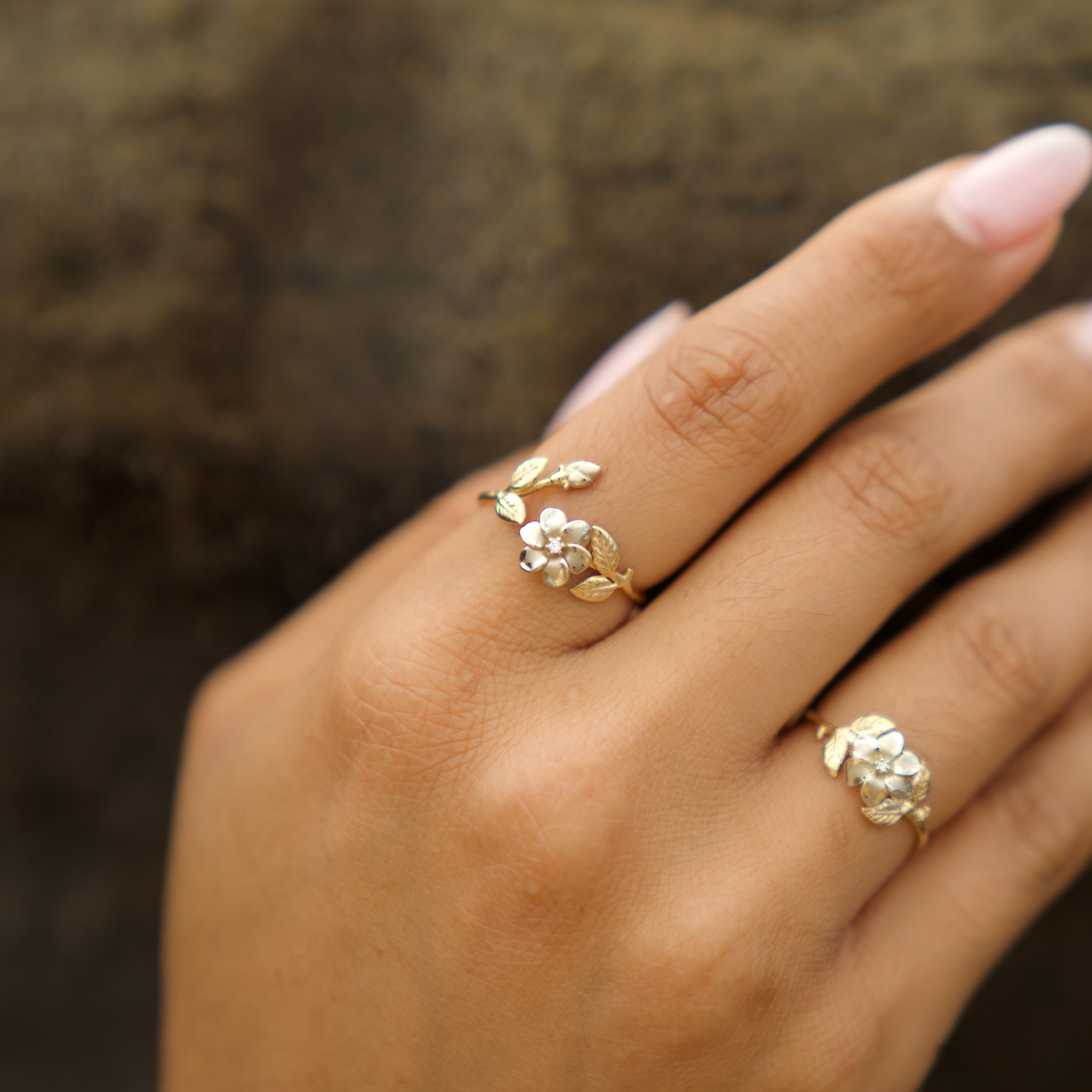 Gardenia Cuff Ring in 14k