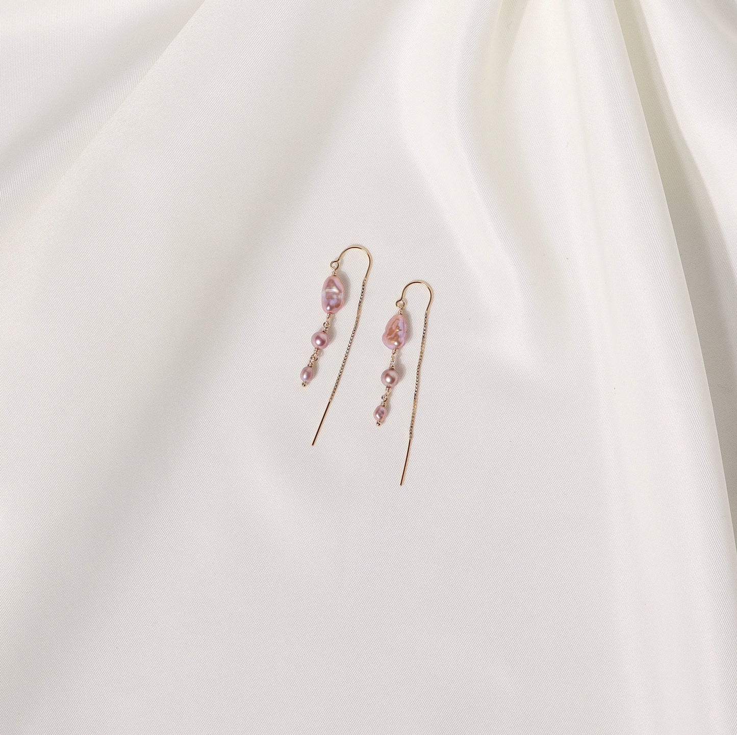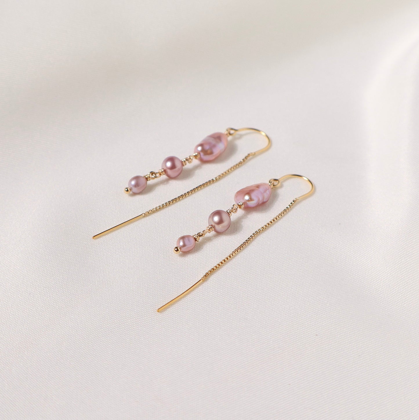 Edison pearls on 14k gold filled box chain threader earrings
